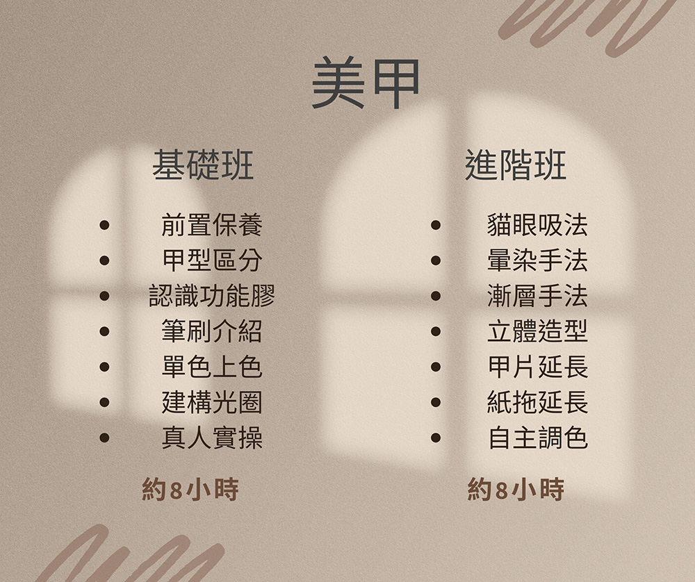 不只教技術,還包含找麻豆、定價策略、拍作品圖、社群經營、廣告投放,幫你真正開啟美業之路。